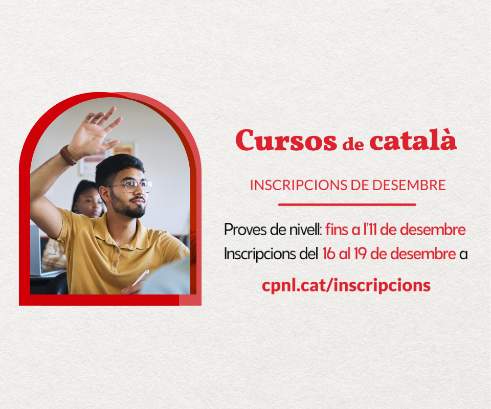 Abans de fer la inscripció és necessari que contacteu amb l’Oficina de Català per a realitzar una prova de nivell (fins a l’11 de desembre). Aquesta prova es pot fer de manera presencial o bé en línia a través de la web Aprèn o millora el teu català | CPNL (Determina el nivell)