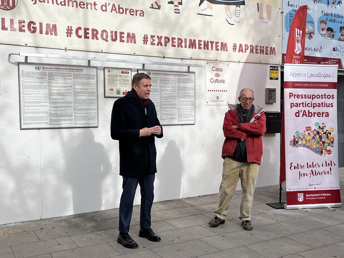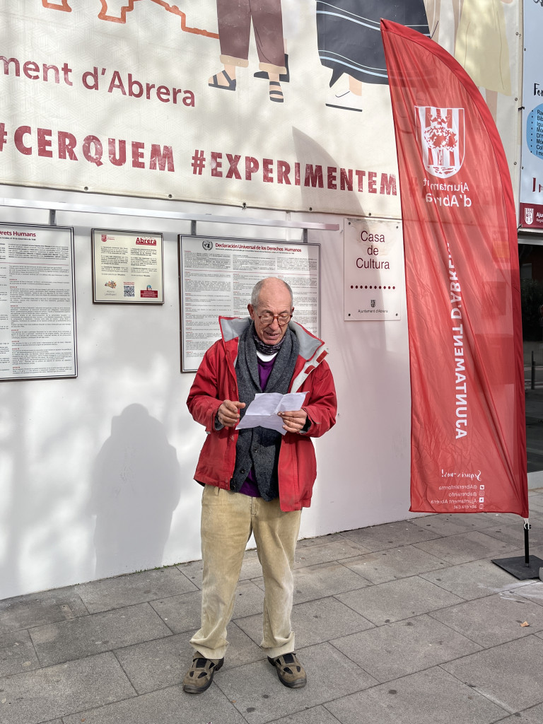 "Hoy inauguramos la declaración, la puesta y colocación de los carteles de la Declaración de los Derechos Humanos, tanto en la biblioteca, la casa de cultura, como en el Mercat Municipal, con el objetivo de dar visibilidad a los derechos humanos que es una propuesta de los presupuestos de participación ciudadana, votada por la ciudadanía, en la cual tenía como objetivo dar a conocer la declaración universal de los derechos humanos y su articulado. Nuestra misión no es solamente es darlo a conocer y colgar estos plafones, sino también explicar el significado que tienen y para eso hay una labor que hoy empieza dando inicio a estos carteles iluminados que van a tener como objetivo explicar a la ciudadanía los derechos humanos en la declaración universal, y lo que vamos a encontrar va a ser un proyecto en el cual impulsemos actividades y demos a conocer ese articulado. Hoy es un día de celebración, en uno de los muy pocos pueblos no solo de Catalunya, sino de España que tiene una declaración de los derechos urbanos libre y accesible para toda la ciudadanía, así que hoy es un día de agradecimiento al autor de la propuesta Juan Carlos Pérez y como alcalde del municipio, estoy muy orgulloso de tenerlos en dos lugares públicos y accesibles".