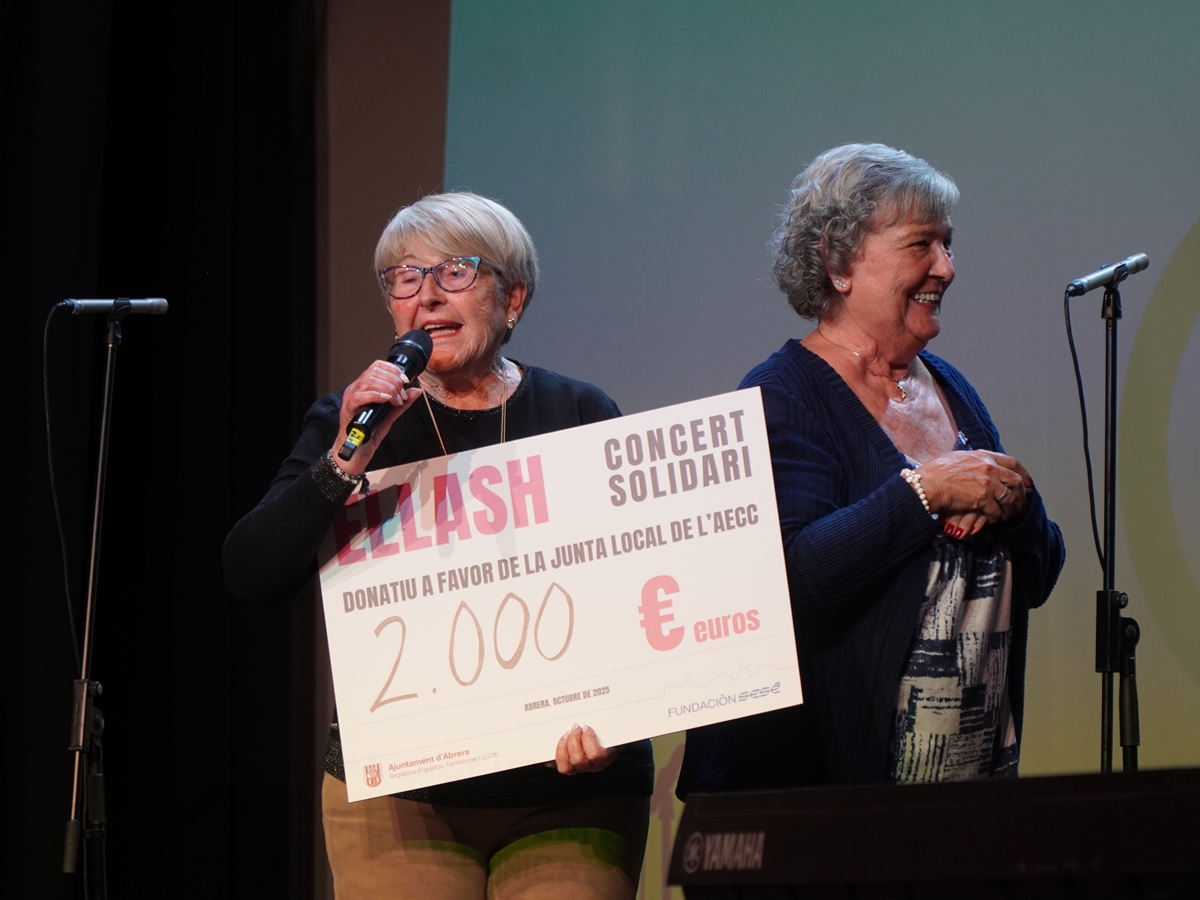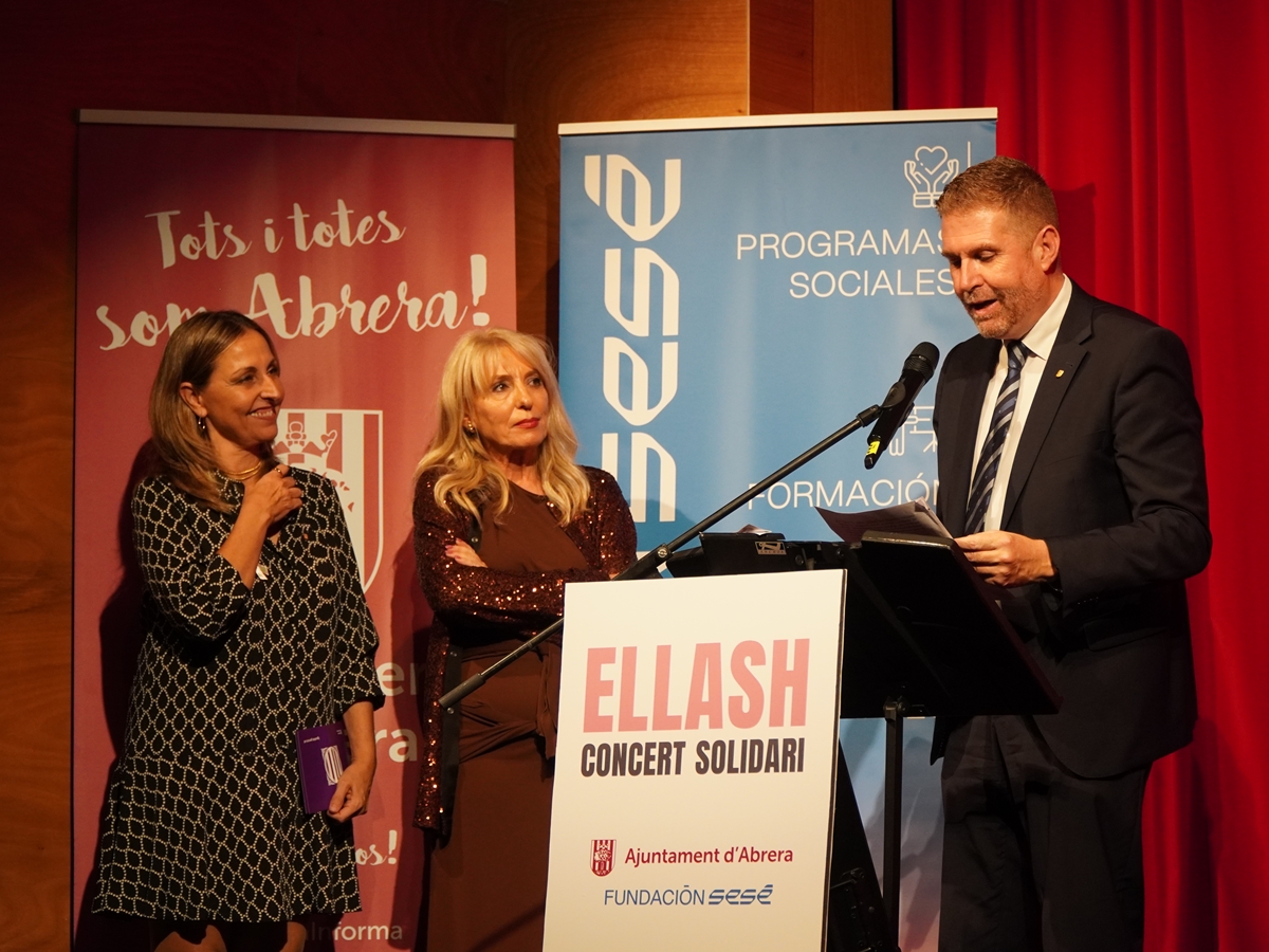 La Fundació Sesé i l'Ajuntament d'Abrera hem organitzat el festival solidari ELLASH, un esdeveniment que uneix art, reflexió i compromís a favor de la igualtat de gènere per convertir la música en un vehicle de transformació social, amb les artistes internacionals María Parrado i Maria Rodés, i la col·laboració d'artistes locals. La trobada va tenir lloc el dissabte 18 d'octubre a partir de les 19.30 h a la Sala Municipal d'Abrera (pl. de Telefònica S/N), i va comptar amb molt bona acollida per part dels veïns i veïnes d'Abrera. A l'acte hi va assistir l'alcalde d'Abrera, Jesús Naharro, acompanyat de regidores i regidors de l'equip de govern, la consellera d’Igualtat i Feminisme, Eva Menor i altres autoritats del Govern de la Generalitat i de la Diputació de Barcelona, així com la presidenta de la Fundació Sesé, Ana Sesé, i l'equip directiu de la fundació.
