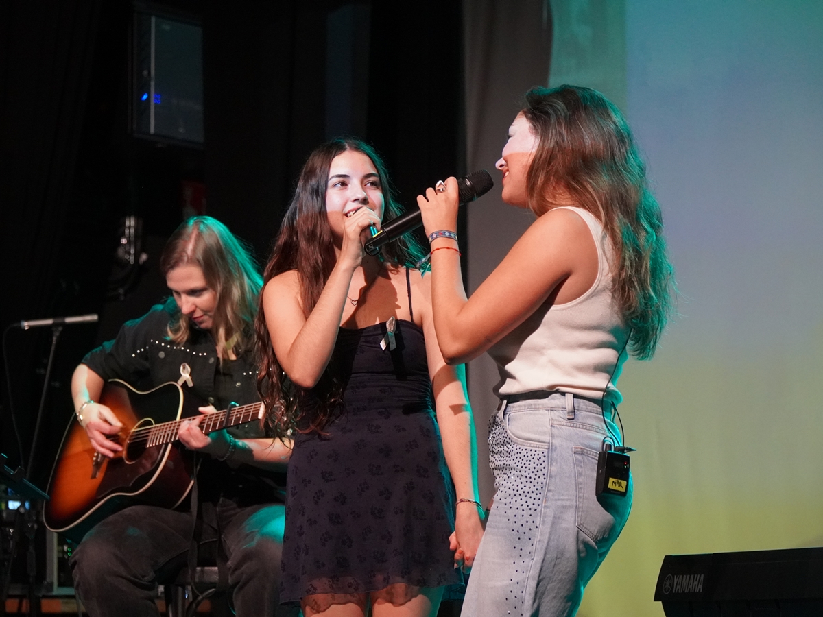 Seguidament, l’escenari es va omplir de música amb les actuacions de María Rodés i María Parrado, dos artistes reconegudes per la sensibilitat, el talent i el compromís social. A elles es van sumar les joves promeses abrerenques Laura León i Nerea Sánchez, participants dels Talent Show celebrats en el nostre municipi a les darreres Festes Majors.