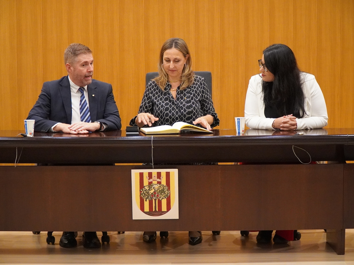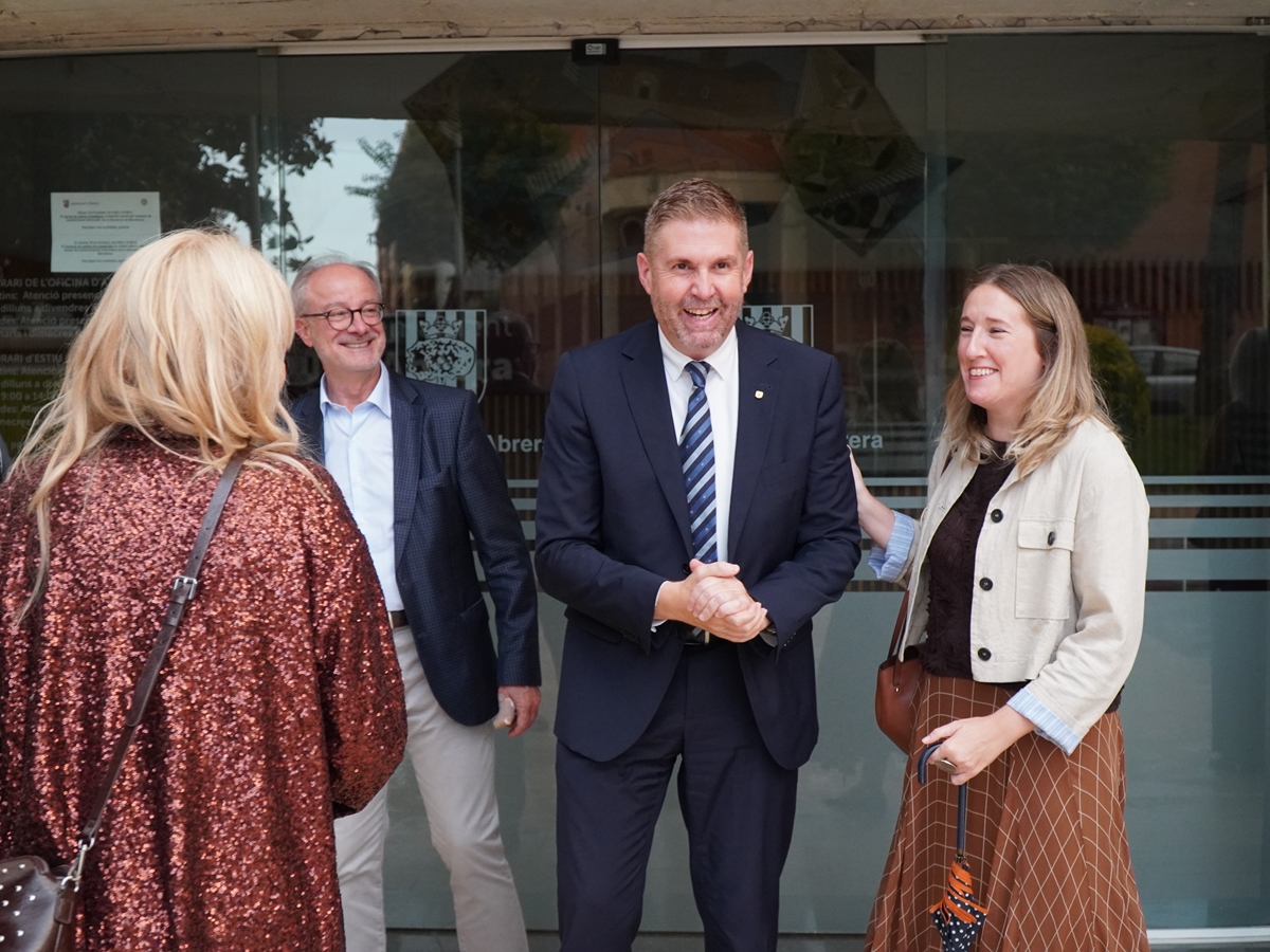 Amb motiu de la celebració del festival solidari ELLASH, el nostre alcalde, Jesús Naharro, va rebre aquest dissabte 18 d’octubre a l'Ajuntament d'Abrera la visita de la consellera d’Igualtat i Feminisme, Eva Menor, i altres autoritats del Govern de la Generalitat i de la Diputació de Barcelona: Anna García-Altés, Gerent de la Regió Sanitària Barcelona Metropolitana Sud; Elisabeth Valenzuela Izquierdo, directora de Serveis Territorials de Barcelona del Departament d’Igualtat i Feminisme de la Generalitat de Catalunya i Soufian Laroussi Akhrif, diputat Adjunt de l’Àrea de Sostenibilitat Social, Cicle de Vida i Comunitat; així com Ana Sesé, presidenta de la Fundació Sesé i altres persones directives de la fundació. La consellera va signar el llibre d'Honor del consistori.