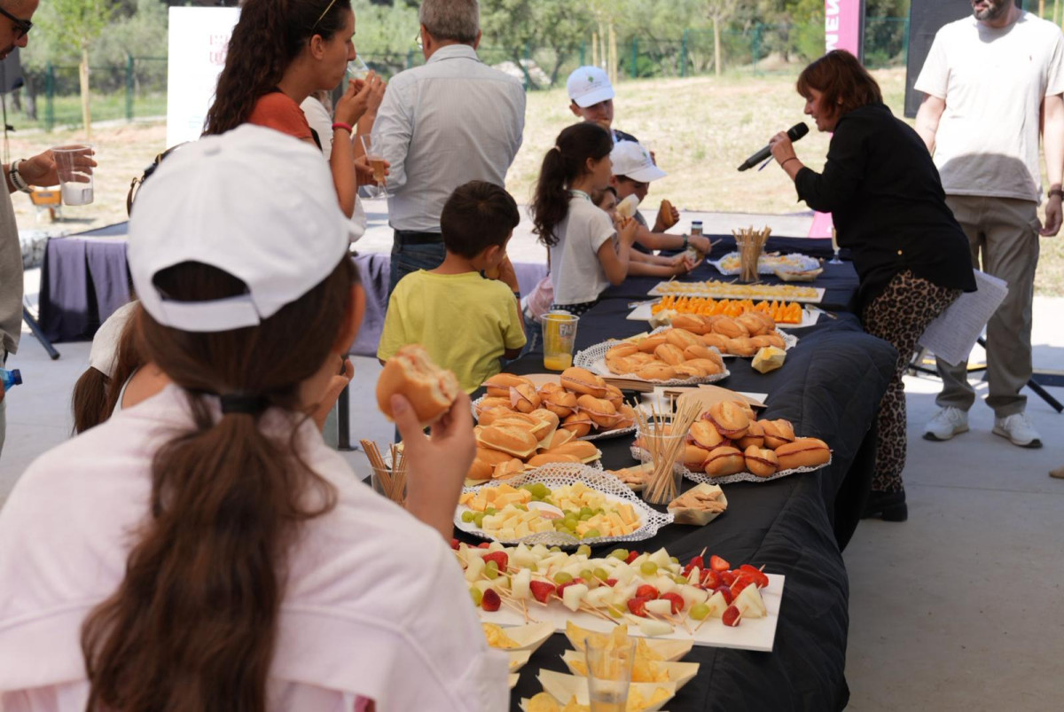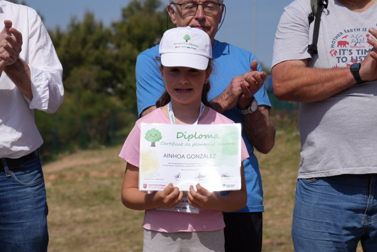Al migdia s’ha fet el bateig dels arbres amb la col·locació de les etiquetes commemoratives, i un brindis de cloenda. També s’han lliurat diplomes als infants assistents. La jornada ha finalitzat amb els agraïments institucionals, un piscolabis compartit entre els i les assistents, posant punt final a una activitat que ha reforçat la consciència ambiental i la participació comunitària.