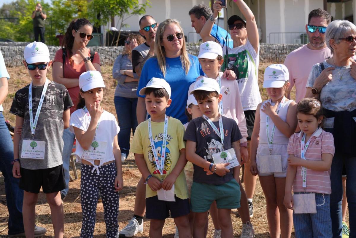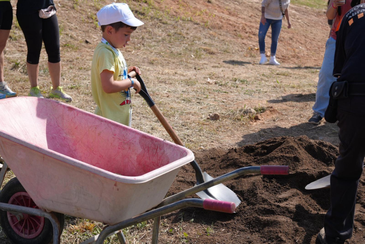 La jornada de plantació d’arbres ha començat a les 9.30 h amb el lliurament de marxandatge als infants assistents, que han rebut gorres i lanyards commemoratius. Seguidament ha tingut lloc la presentació institucional, en què s’ha donat la benvinguda, amb el nostre alcalde Jesús Naharro i representants de l'Empresa i Fundació Sesé