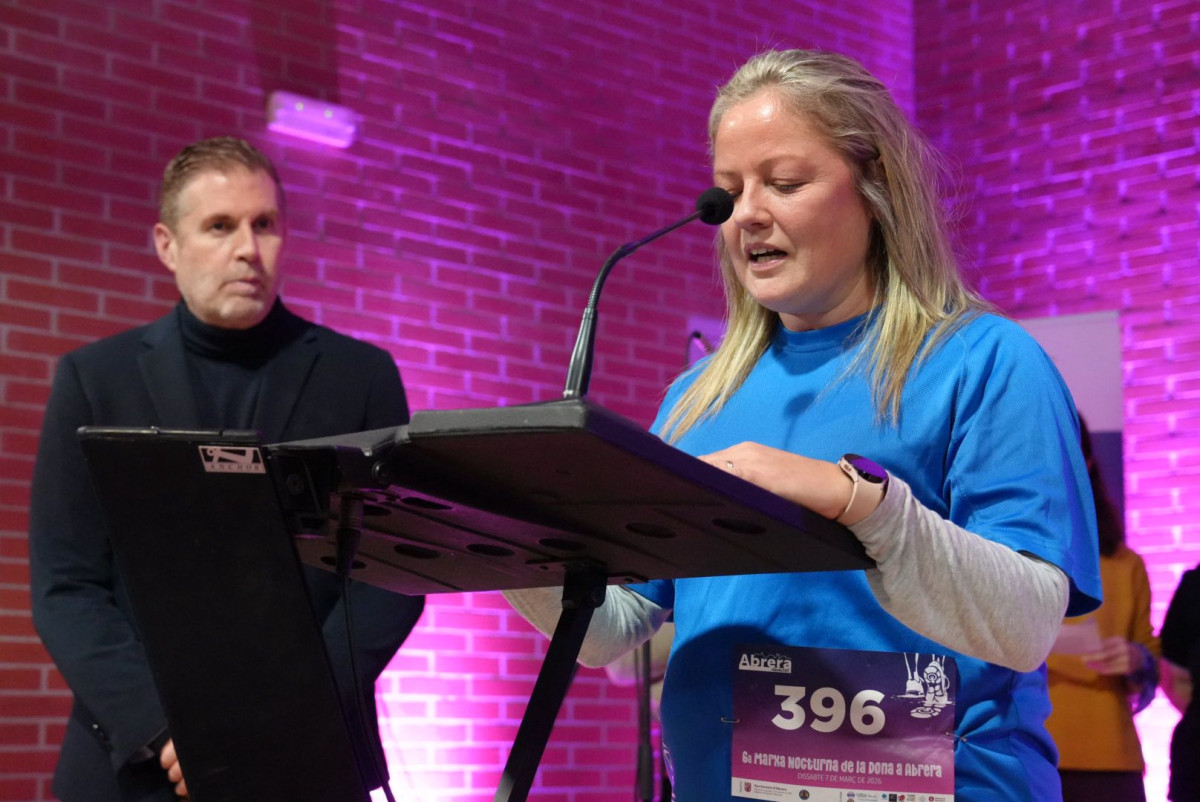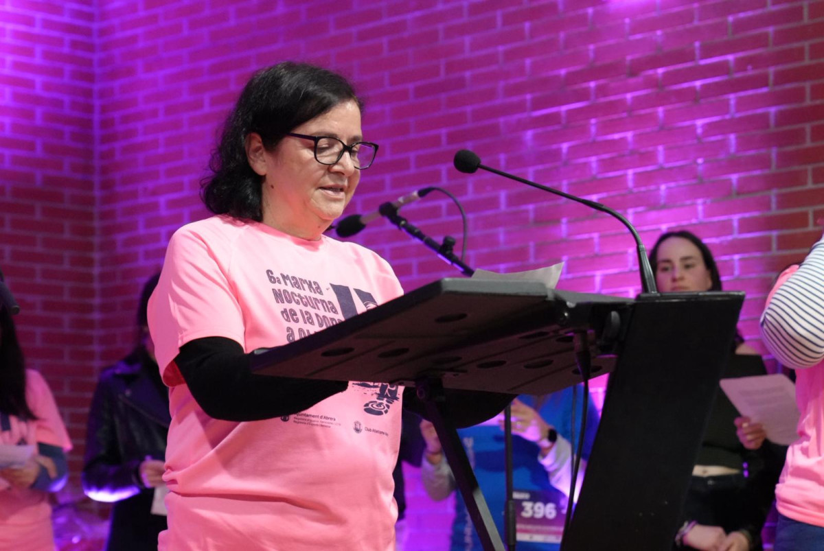 "Com cada any ens trobem aquí per participar activament en la Marxa Nocturna de la dona d’Abrera. Som un grup de dones que ens comprometem amb aquesta activitat en concret i, en general, amb tot el que fem aquí a Abrera. Visca la dona i visca la cursa de la dona!".
