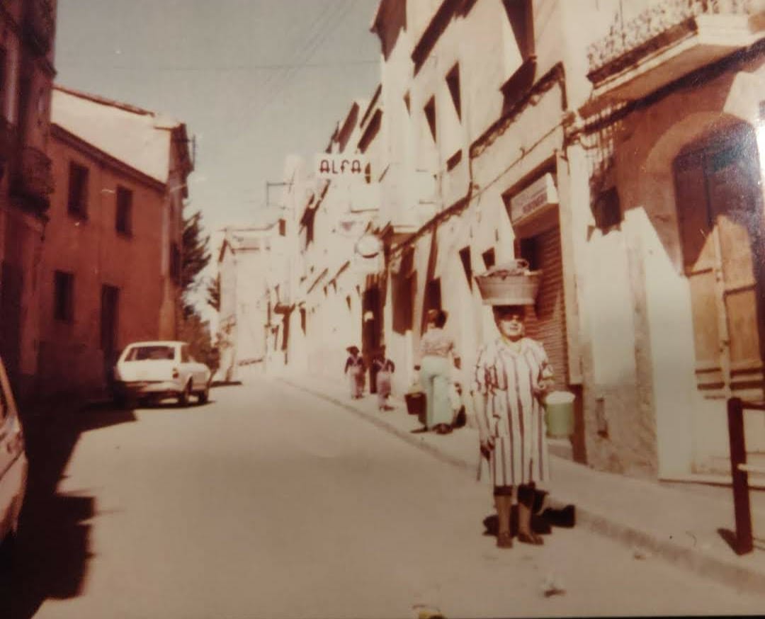 Paulina Bonastre al c. Major, de camí als safareigs públics del c. de La Font