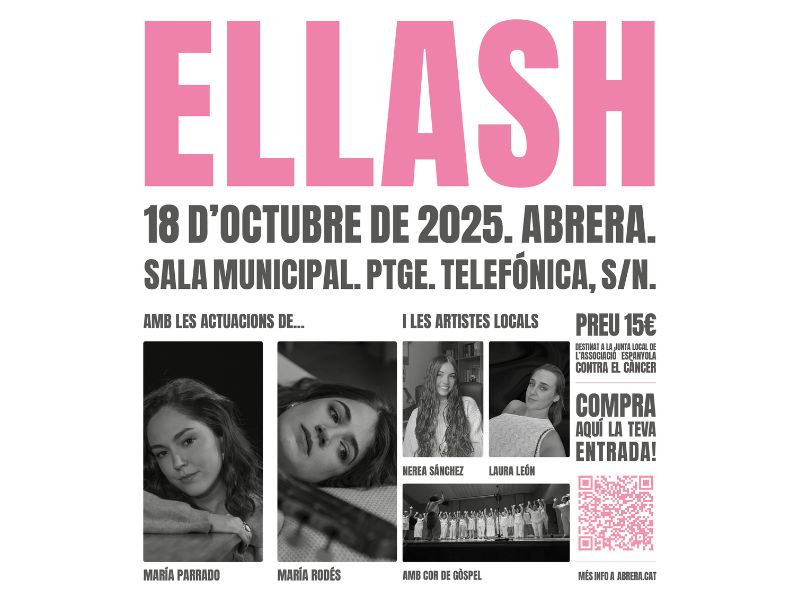 Dissabte 18 d'octubre se celebra a Abrera el festival solidari ELLASH, amb les actuacions de Maria Parrado i María Rodés i la col·laboració d'artistes i entitats d'Abrera, a benefici de la Junta local de l'AECC
