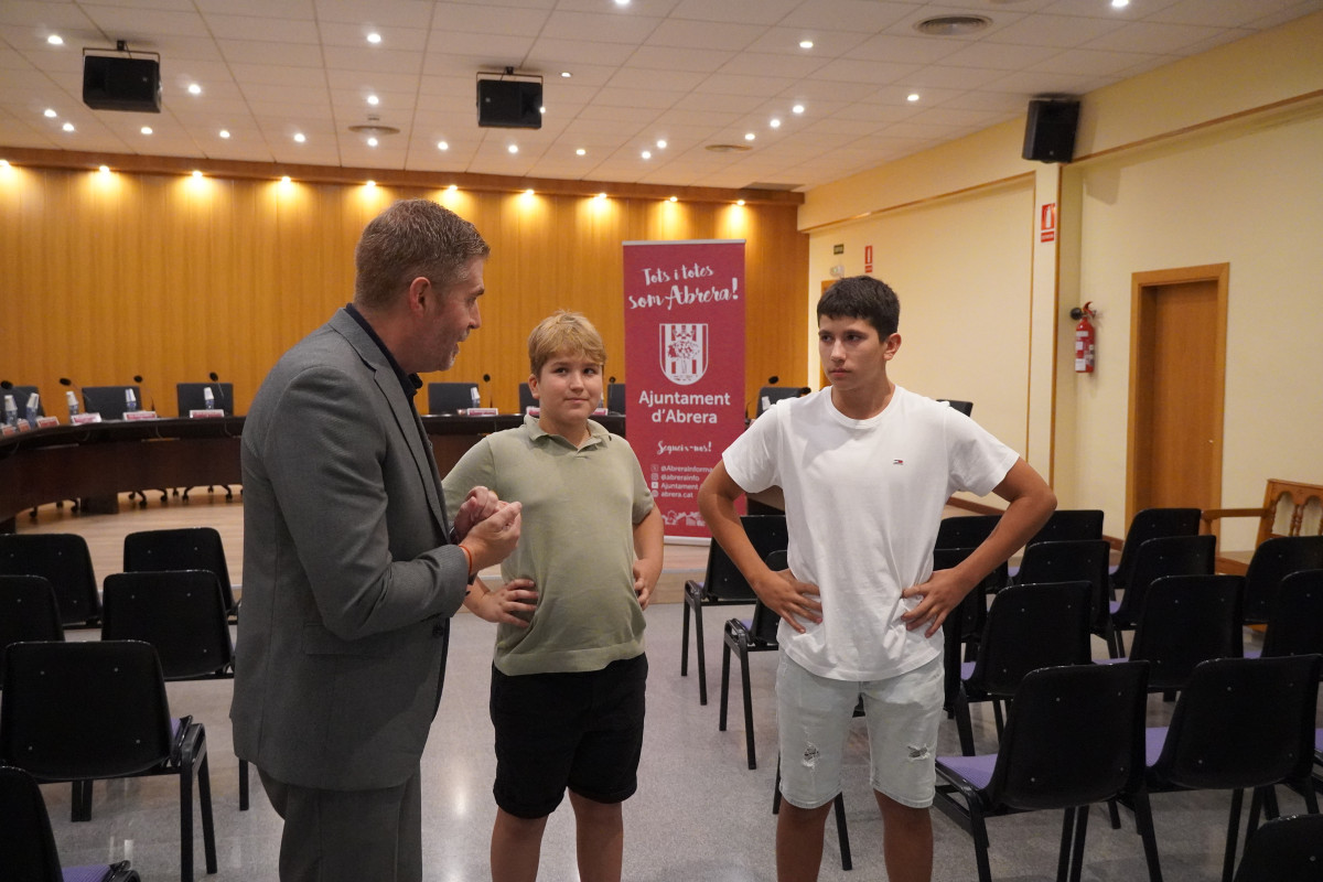 L’alcalde va felicitar els dos joves esportistes, d’11 i 12 anys, per la seva participació en aquest torneig internacional, i els va encoratjat a seguir treballant i entrenant per a assolir els seus objectius.
