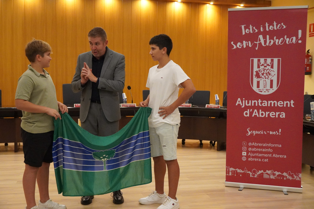 El nostre alcalde, Jesús Naharro, ha fet entrega recentment de la bandera d’Abrera als joves taekwondistes abrerencs, Hugo Da Fonseca i Sergio Gázquez, per a la seva participació a l’Open Ilyo Kyorugi de pumses. L’acte de lliurament de la bandera va tenir lloc el dijous 25 de setembre a la tarda, a la Sala de Plens del nostre Ajuntament.