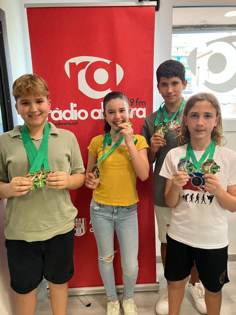 Els quatre joves, acompanyats per les seves famílies, han visitat els estudis de Ràdio Abrera per explicar-nos de primera mà la seva experiència en aquest campionat.