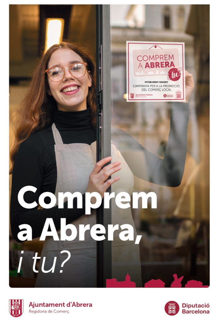 “Des de l'Ajuntament d'Abrera, conjuntament amb els comerços locals, iniciem la campanya ‘Comprem a Abrera, i tu?’, amb l'objectiu de donar suport al comerç d'Abrera mitjançant ajuts a la ciutadania vinculats als preus de productes i serveis dels establiments adherits. La ciutadania pot adquirir vals de descompte a través de l'espai web compremaabrera.moneder.cat”.
