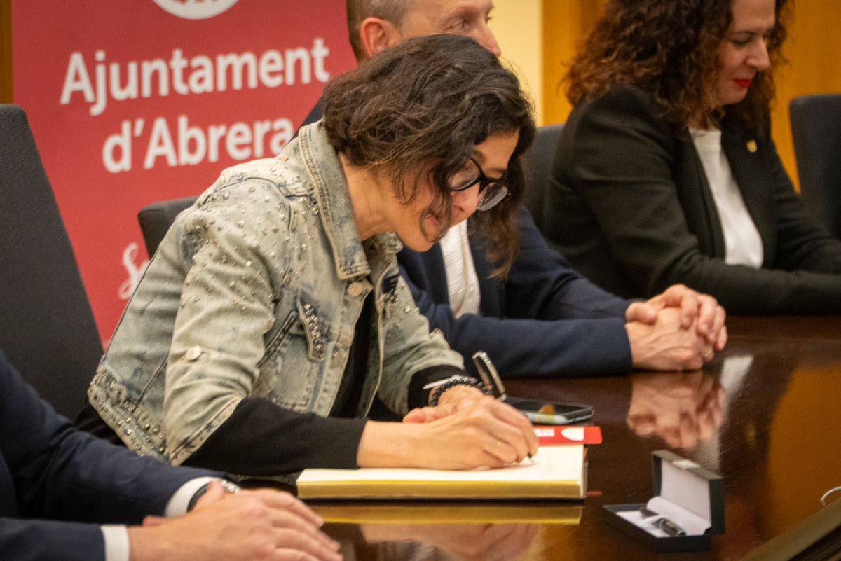 La consellera d'interior i Seguretat Pública de la Generalitat, Núria Parlon, visita Abrera i signa el Llibre d'Honor de l'Ajuntament