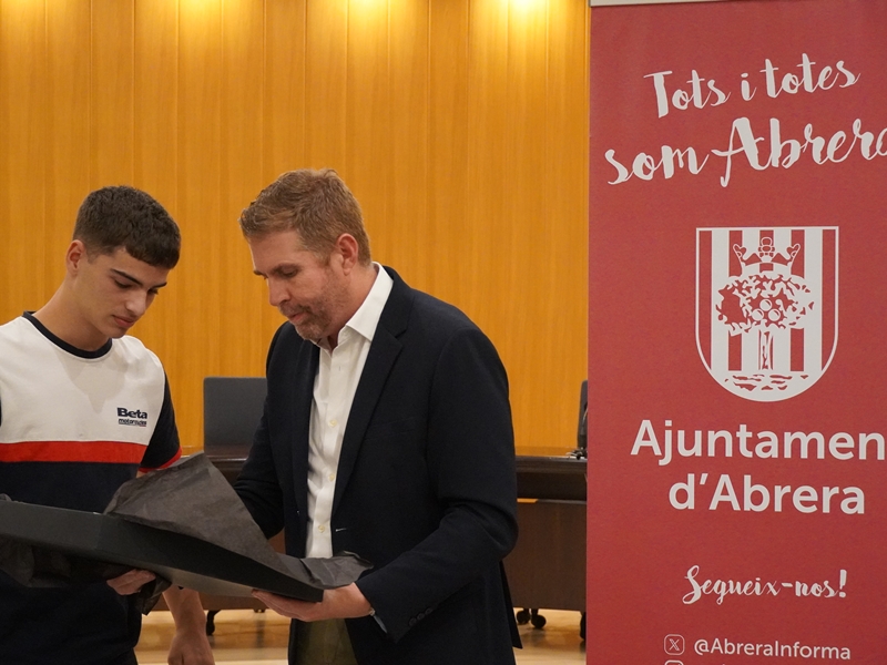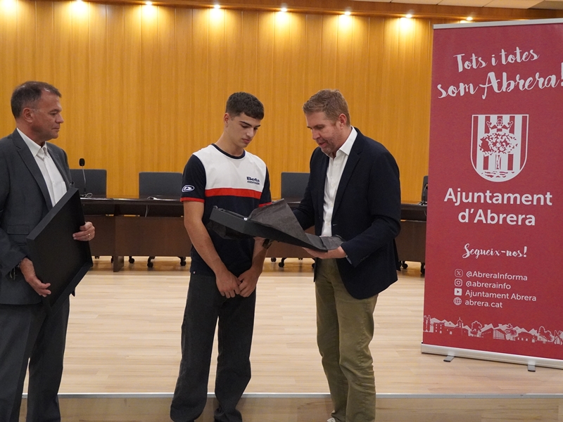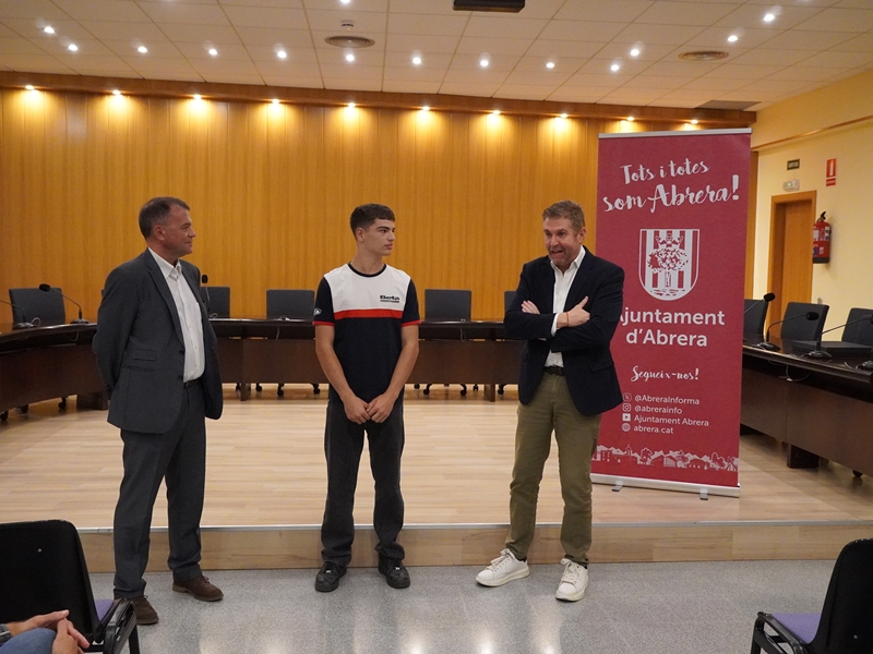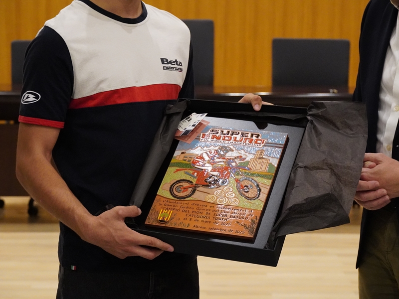 L'Ajuntament d'Abrera lliura una placa de reconeixement al jove pilot abrerenc Ramón Godino, Campió del món de SuperEnduro en la categoria Youth de 125 cc