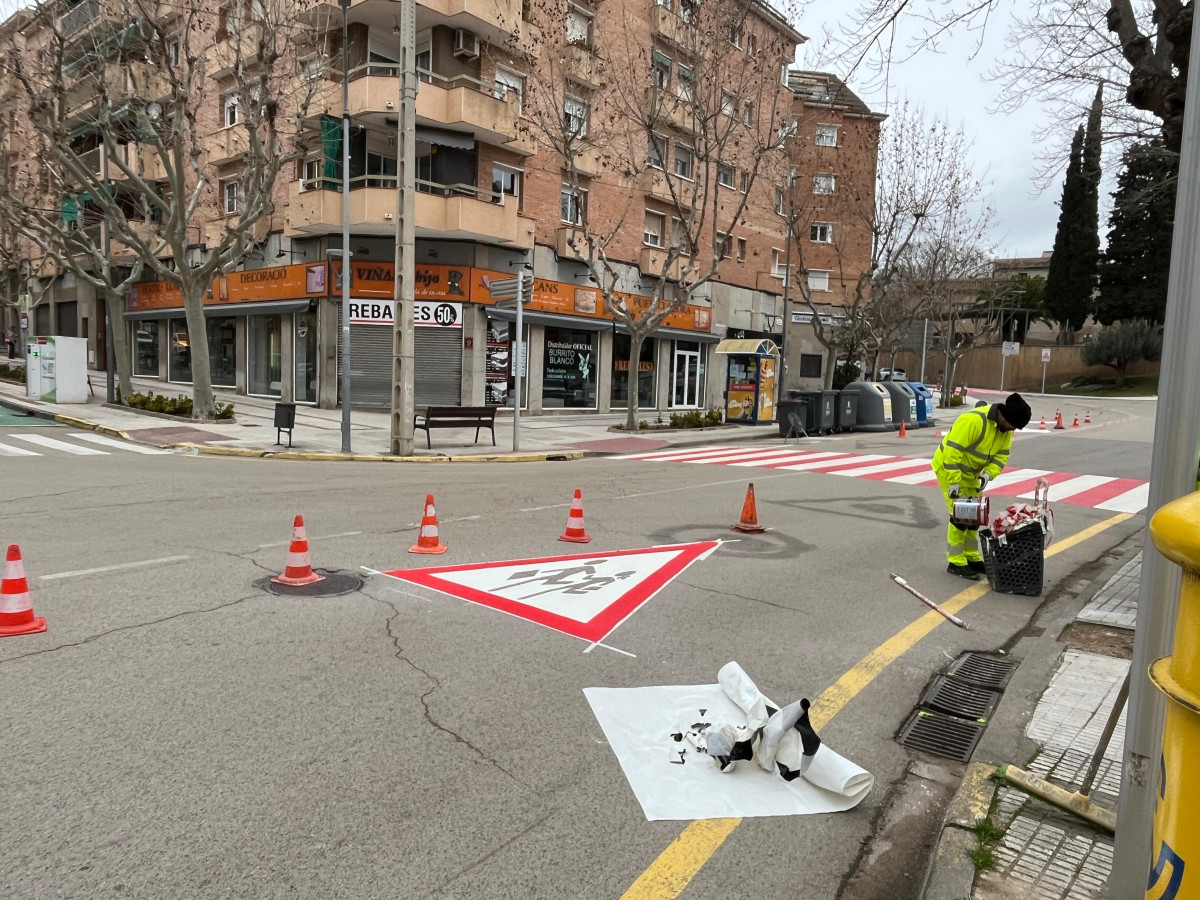 En la zona de l’Institut Voltrera, en l’encreuament entre el passeig de l’Estació i el carrer de Josep Tarradellas, també s’han executat treballs de reasfaltat del paviment i repintat dels passos de vianants, així com el repintat de la senyalització horitzonal.