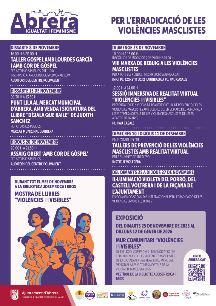 • Abrera Municipi 100% Feminista! Durant el mes de novembre commemorem el Dia Internacional contra les violències envers les dones amb diverses propostes per a tots els públics