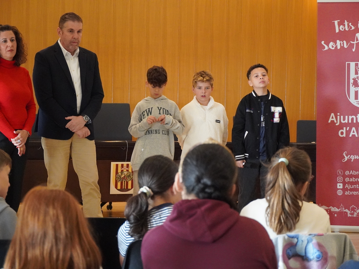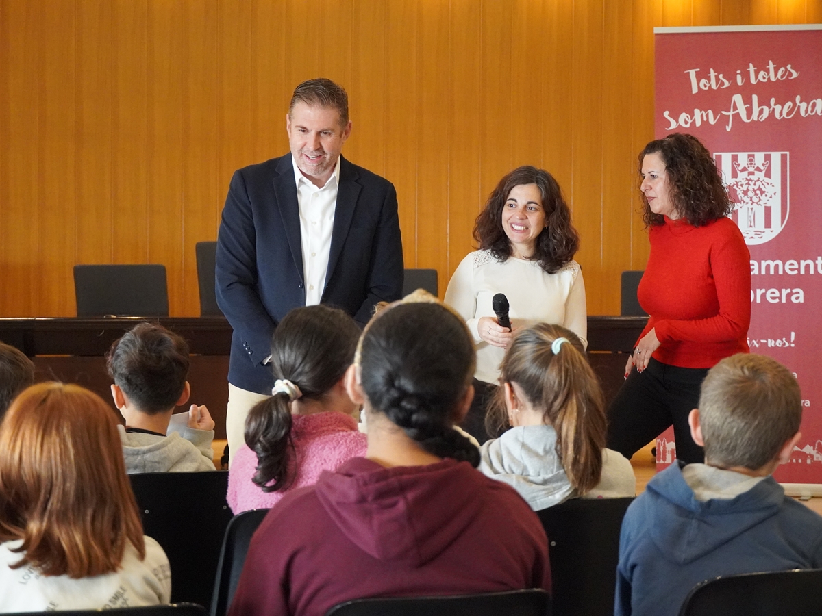 En la visita d'aquest dimarts 14 d'abril, l'alcalde d'Abrera, Jesús Naharro, les regidores, Giulia Mirto, Arantxa Galofré i Maite Novell, juntament amb tècniques municipals, han donat la benvinguda a l'alumnat i docents que els han acompanyat, i han seguit amb molt d'interès la presentació de les dues cooperatives constituïdes aquest curs.