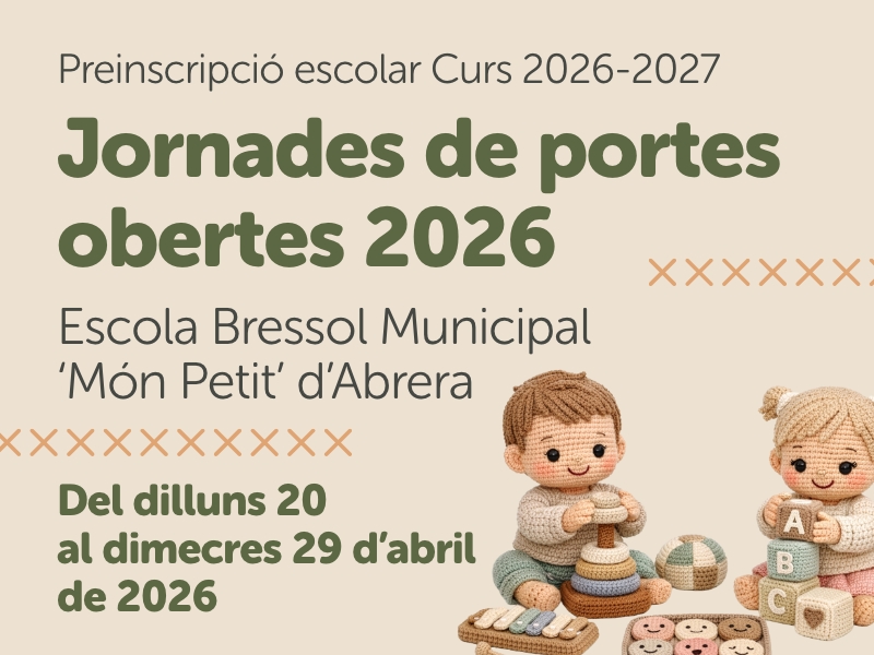Aquesta és una ocasió única per descobrir com es fomenta el desenvolupament cognitiu, emocional i social dels petits i petites a l'Escola Bressol Municipal Món Petit. I del divendres  8 al divendres 22 de maig (ambdós inclosos) el centre abrerenc durà a terme el període de preinscripció pel curs 2026-2027. Preneu nota!
