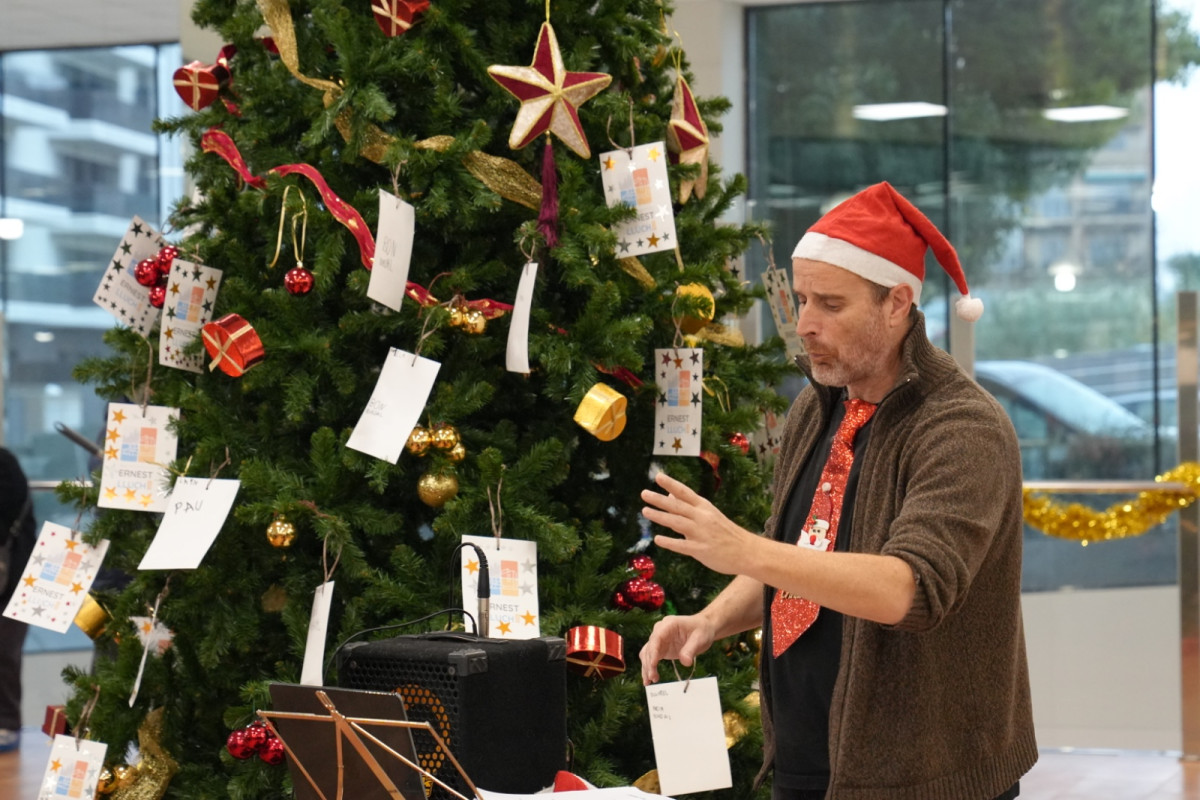 Un any més, el Tió de Nadal Solidari va ser protagonista de la tarda, amb una animació a càrrec de la companyia La Xarranca, que va fer gaudir els infants amb cançons, històries i molta participació. L’activitat, que es va realitzar de 17 h a 19 h, va tenir també un vessant solidari, amb una recollida d’aliments i productes d’higiene en col·laboració amb Càritas, reforçant així els valors de solidaritat i comunitat propis d’aquestes dates.