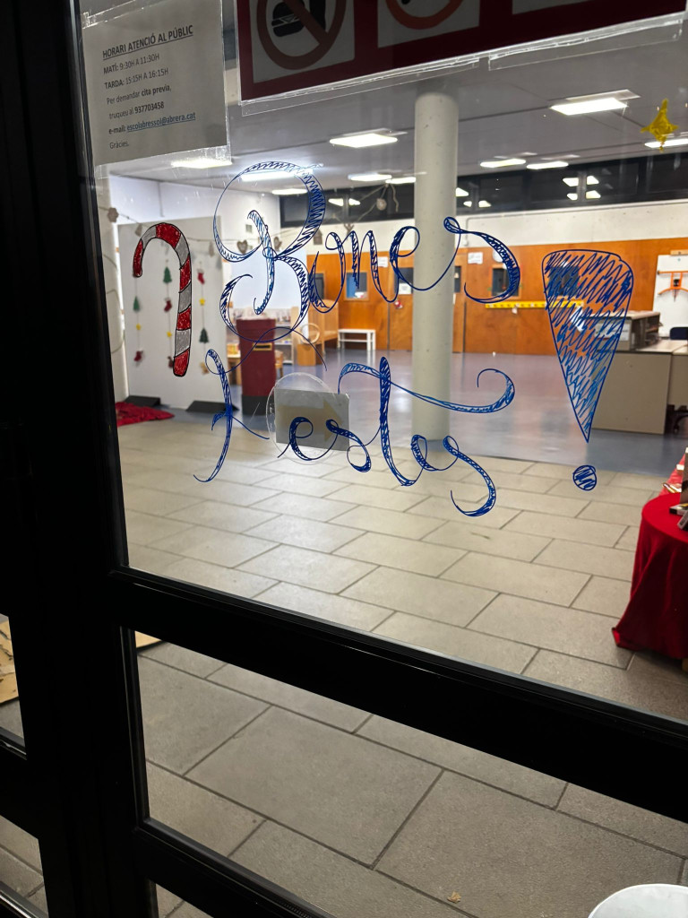 Dilluns 15 de desembre, de 17.00 h a 20.00 h, a la Casa de Cultura i Escola Bressol Municipal Món Petit vam organtizar un taller de pinta-vidres nadalenc, per a joves de 12 a 18 anys, que van decorar els vidres amb motius nadalencs.