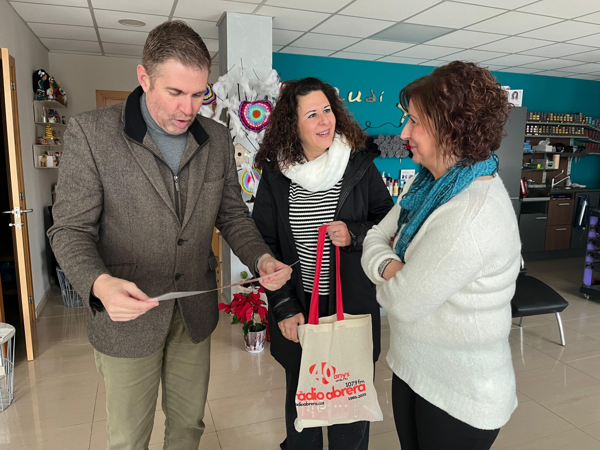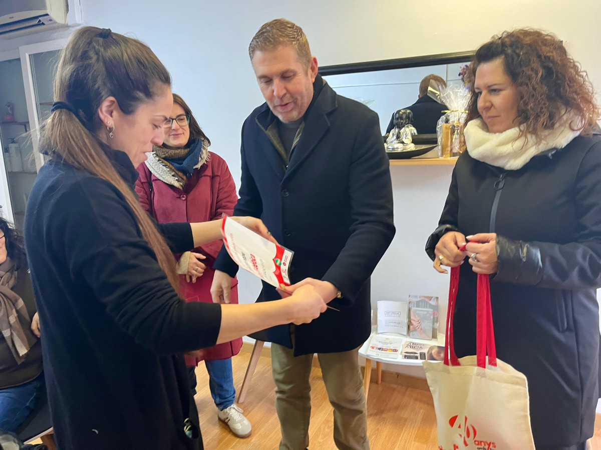 L'Ajuntament d'Abrera lliura els xecs als establiments guanyadors del 15è Concurs d’Aparadors Nadalencs d'Abrera: Ortega's & Crochet, Perruqueria Donant Forma, Alicia Estética i Perruqueria Gaudí