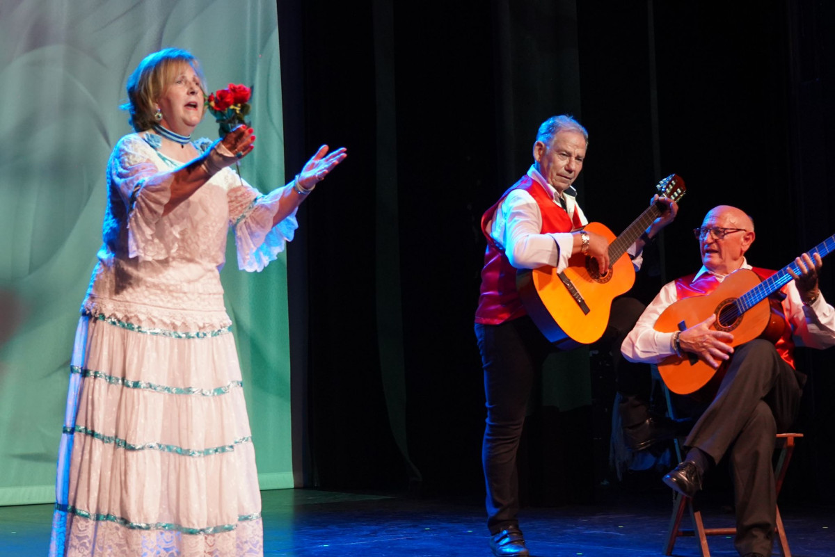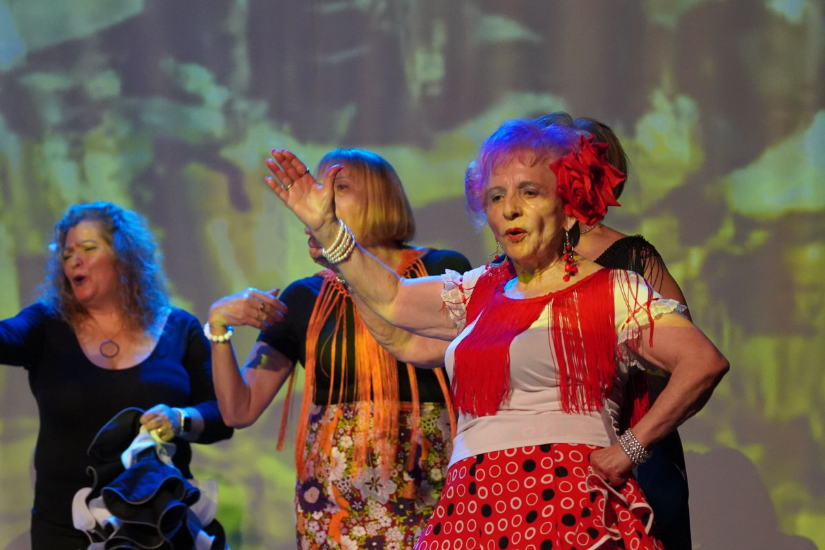 Els veïns i veïnes d'Abrera gaudeixen de la representació de 'Mamma Mia' del Grup de Teatre del Casal de la Gent Gran a la Sala Municipal, que es va omplir de gom a gom